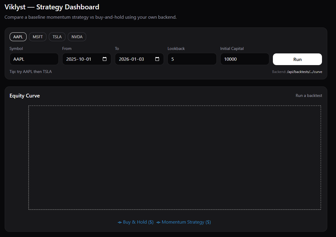 A quantitative backtesting platform with OHLCV ingestion, baseline strategies, ML-assisted trading workflows, and AI-generated narrative explanations.
